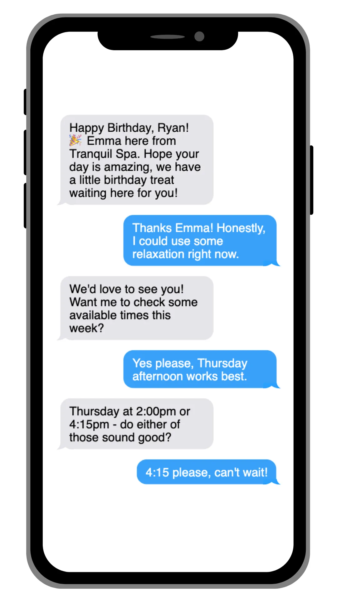 Emma ensures every client feels cared for, boosting repeat visits without adding any extra effort for your team.